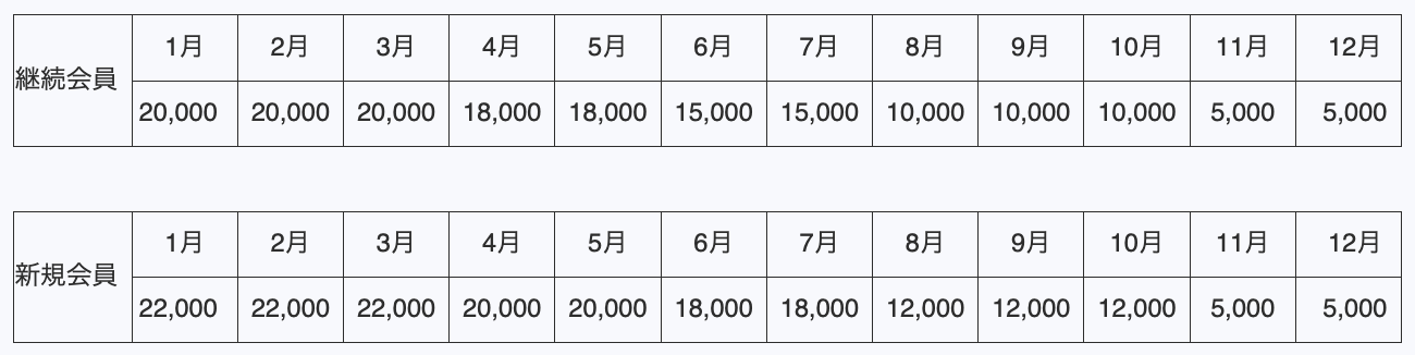 入会月別会費: